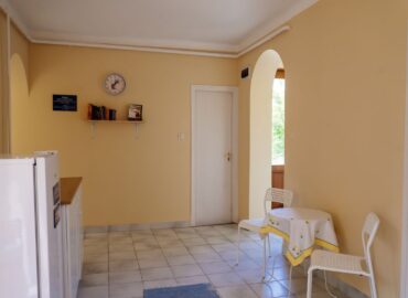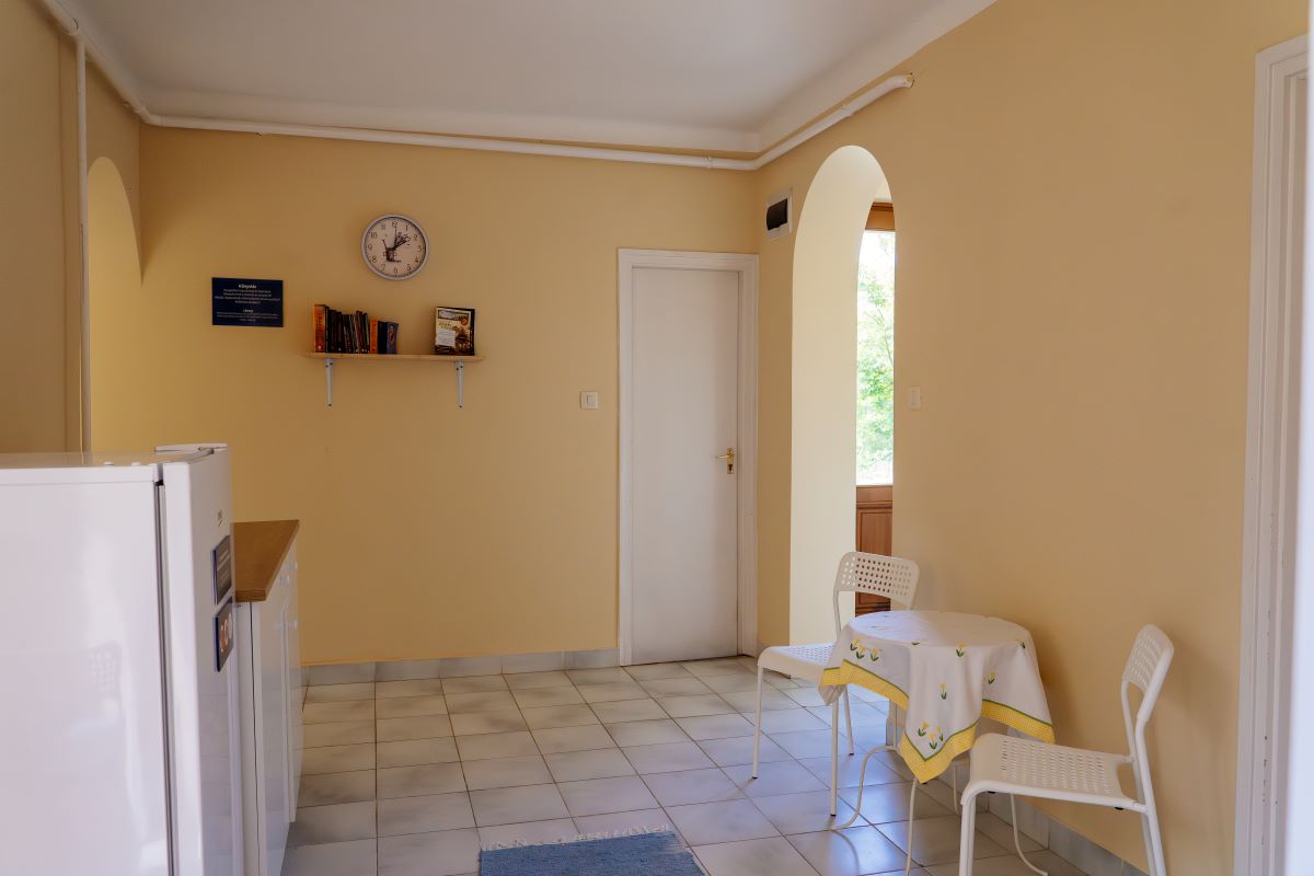A konyhából két szoba nyílik, a folyosóról további három, az utolsó szoba pedig kívülről közelíthető meg. A cipőinket kényelmesen elhelyezhetjük az ajtó melletti cipőtartón, mert az egész házban csak kinti cipő nélkül tartózkodhatunk.