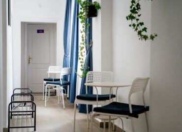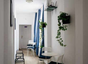 As soon as we enter the building, we are greeted by a cozy little corridor with small tables and chairs. Here, in the sunny atmosphere, we can comfortably eat our meals or work on our laptops in a calm environment. Free Wi-Fi in the house ensures uninterrupted internet connection.