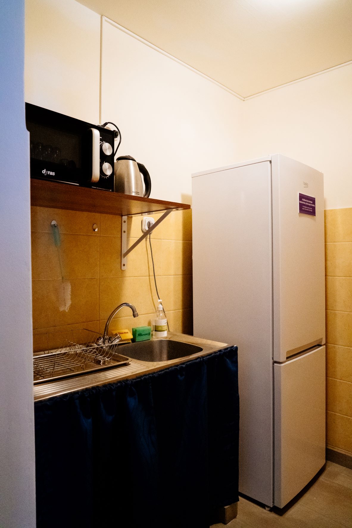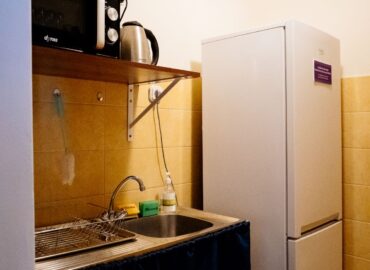 This room is located in the main Kamala Bhavan building, which is a purple colored building on the corner of Fő utca and Csepregi utca. The female and male dormitories, as well as a single room, are located in this building, which offer the most affordable accommodation option.